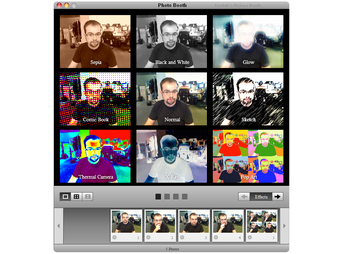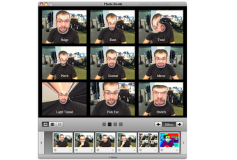 Photo Booth pour Windows 7 est très simple à utiliser. Il suffit d'autoriser l'utilisation de la webcam, de cliquer sur l'icône en forme d'appareil photo puis vous avez 3 secondes pour vous positionner devant l'objectif. Les images capturées s'alignent au bas de l'interface puis il suffit de choisir un effet à appliquer à chacune d'entre elles avant de les uploade sur votre compte Facebook ou Flickr. Notez toutefois que certains effets proposés ne fonctionnent pas...